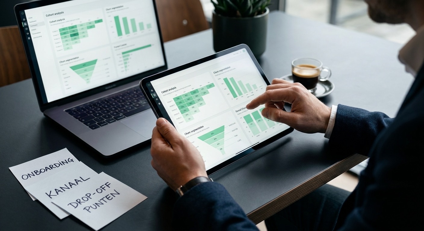 Hier gaat het vaak mis, niet bij bereik maar bij interpretatie. Welke cohort haakt bij jou structureel af, en uit welk kanaal komt die groep eigenlijk? Zonder dat antwoord stuur je nog steeds op symptomen.